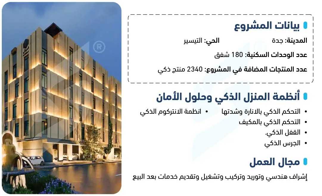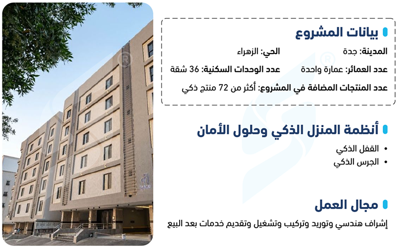 عدد الوحدات السكنية : 36 شقة سكنية ذكية جدة